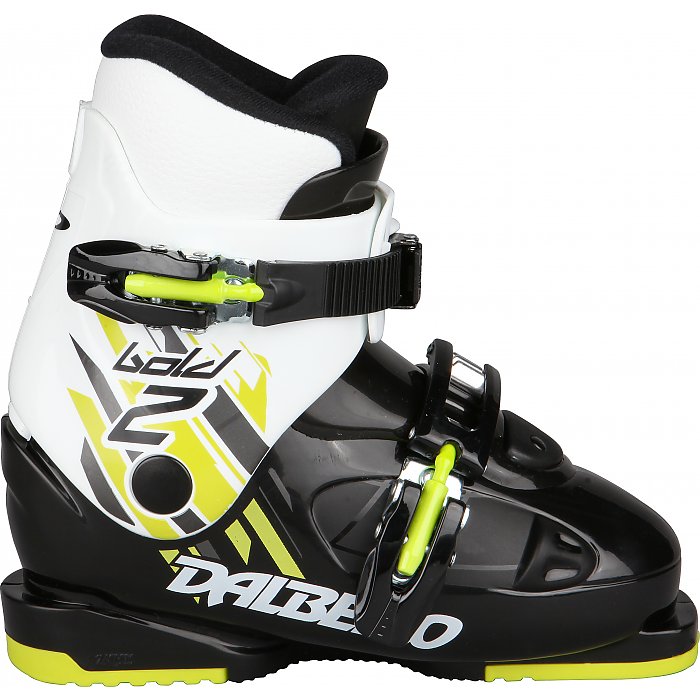 Dalbello Bold 2 alpinstøvel til junior med 2 spenner. Super-Comfort innersko sikrer god komfort, og den store pløsen gjør det lett å trø ned i støvelen. Hurtigspennen øverst gjør det enklere for barn å stramme og løsne alpinstøvelen på egenhånd. Profilert antiskli-såle gir bedre grep når en går på snøen.