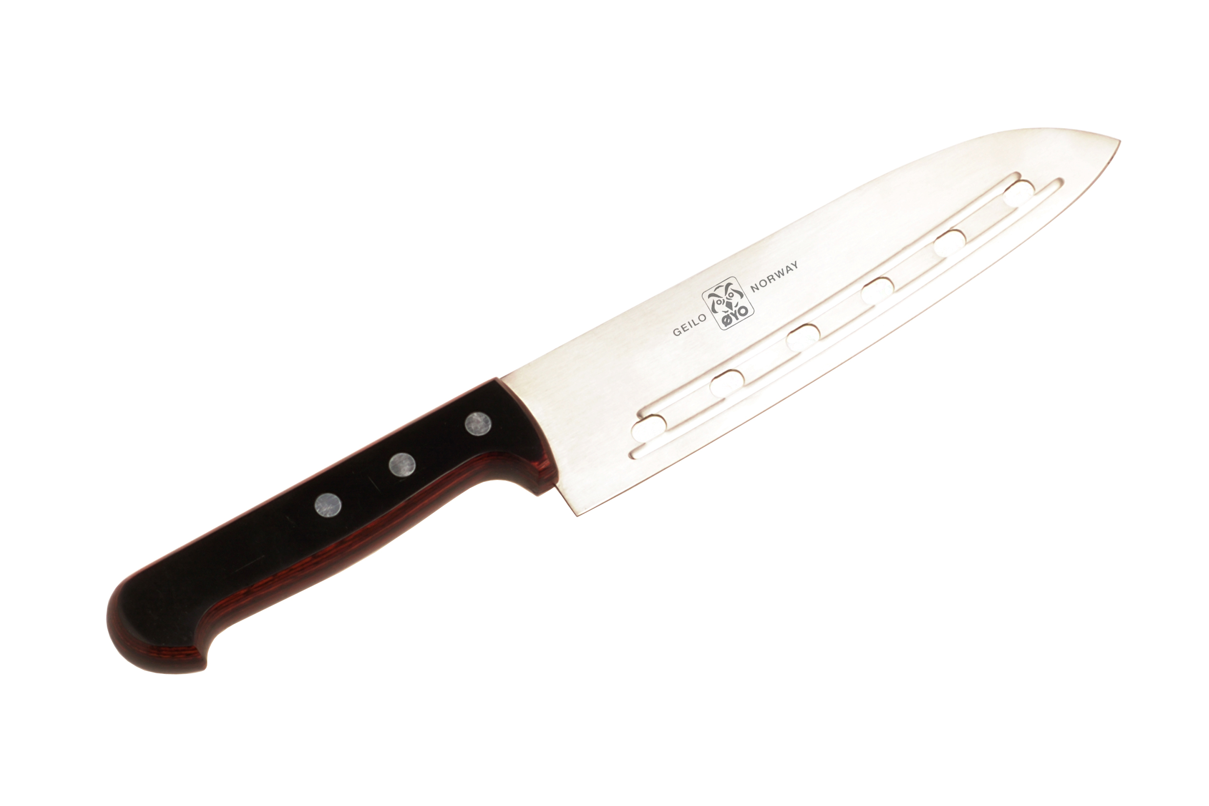 Kokkekniv med hull og riller gjør det enkelt å skjære. Kniven kleber ikke.