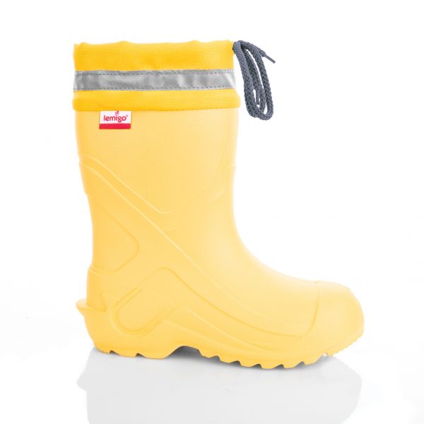 Lemigo Camp støvler i lett og slitesterkt EVA-materiale av høy kvalitet med slitesterk ribbekant i polyester med refleksbånd og snøring. Støvlene har god varmeisolering, som gjør at føttene holdes varme og tørre selv i minusgrader. Perfekt for daglig bruk i vått vær, og til lek i hagen, sølepytter, gjørme og snø.