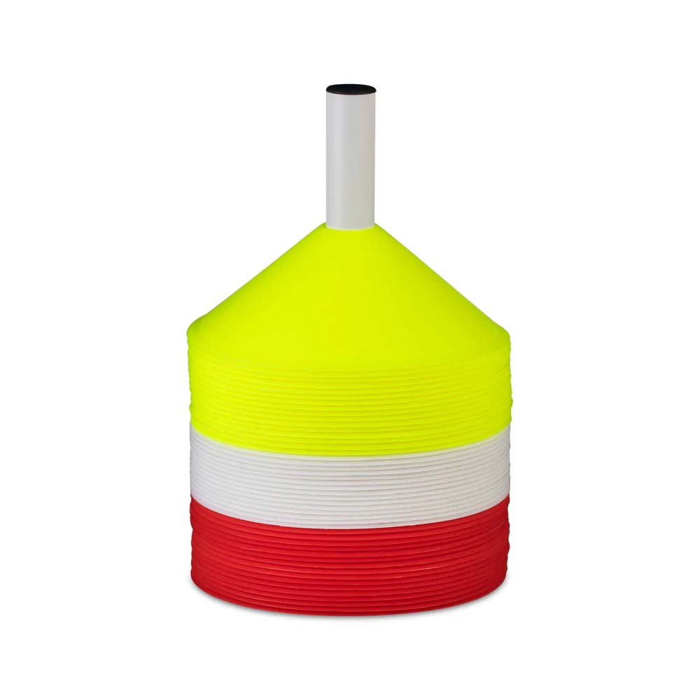 Select markeringssett med plastholder og 48 kjegler i tre farger - rød, gul og hvit. Høyde kjegle: 7 cmVekt kjegle: 52 g