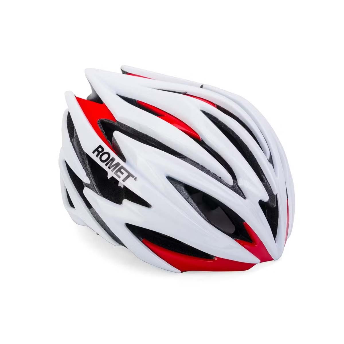 Romet 109 sykkelhjelm til voksen. Sporty sykkelhjelm i matt hvit og rød med god ventilasjon som holder hodet avkjølt på varme sommerdager. God passform sikrer høy komfort og beskyttelse.